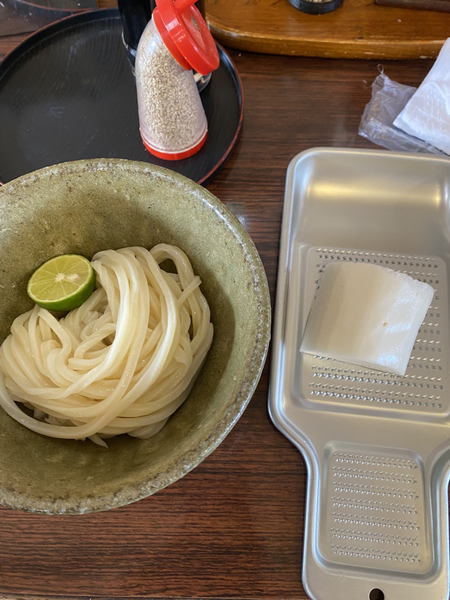 A whole daikon radish is handed to you—grate it yourself and pile it on.